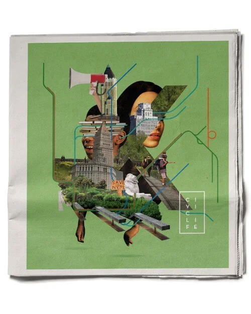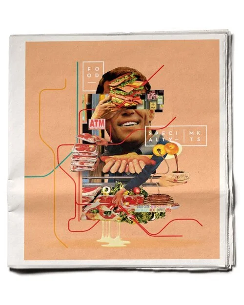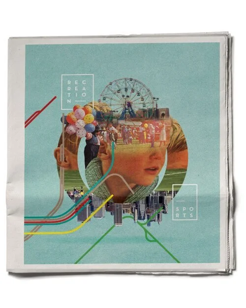 In this series, I use the visual trope of the subway to anchor my compositions, hoping to convey the viewer through each Village Voice section just as its physical analog conveys the traveler through each borough. The sections spell out the ultimate point of departure and arrival: New York.