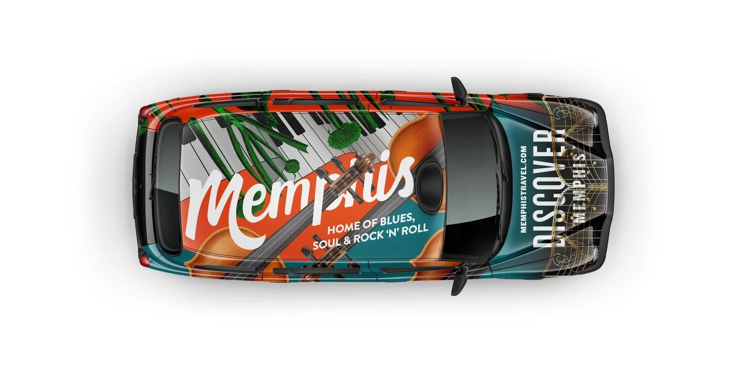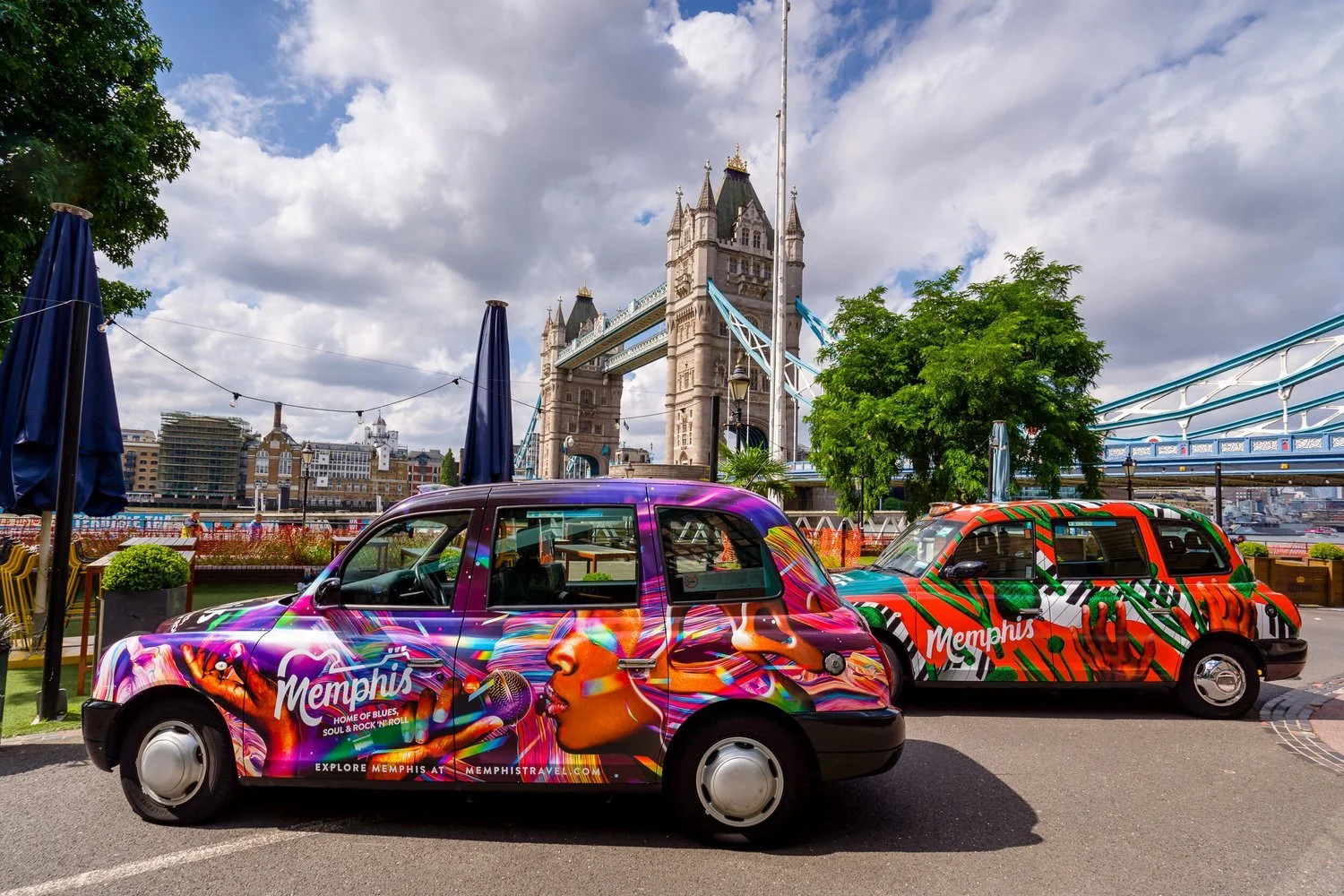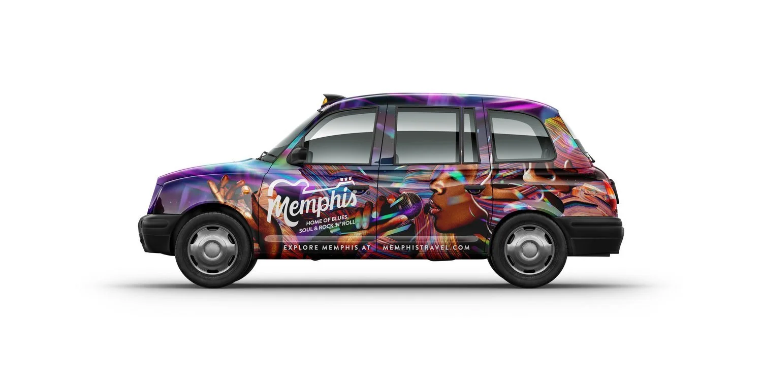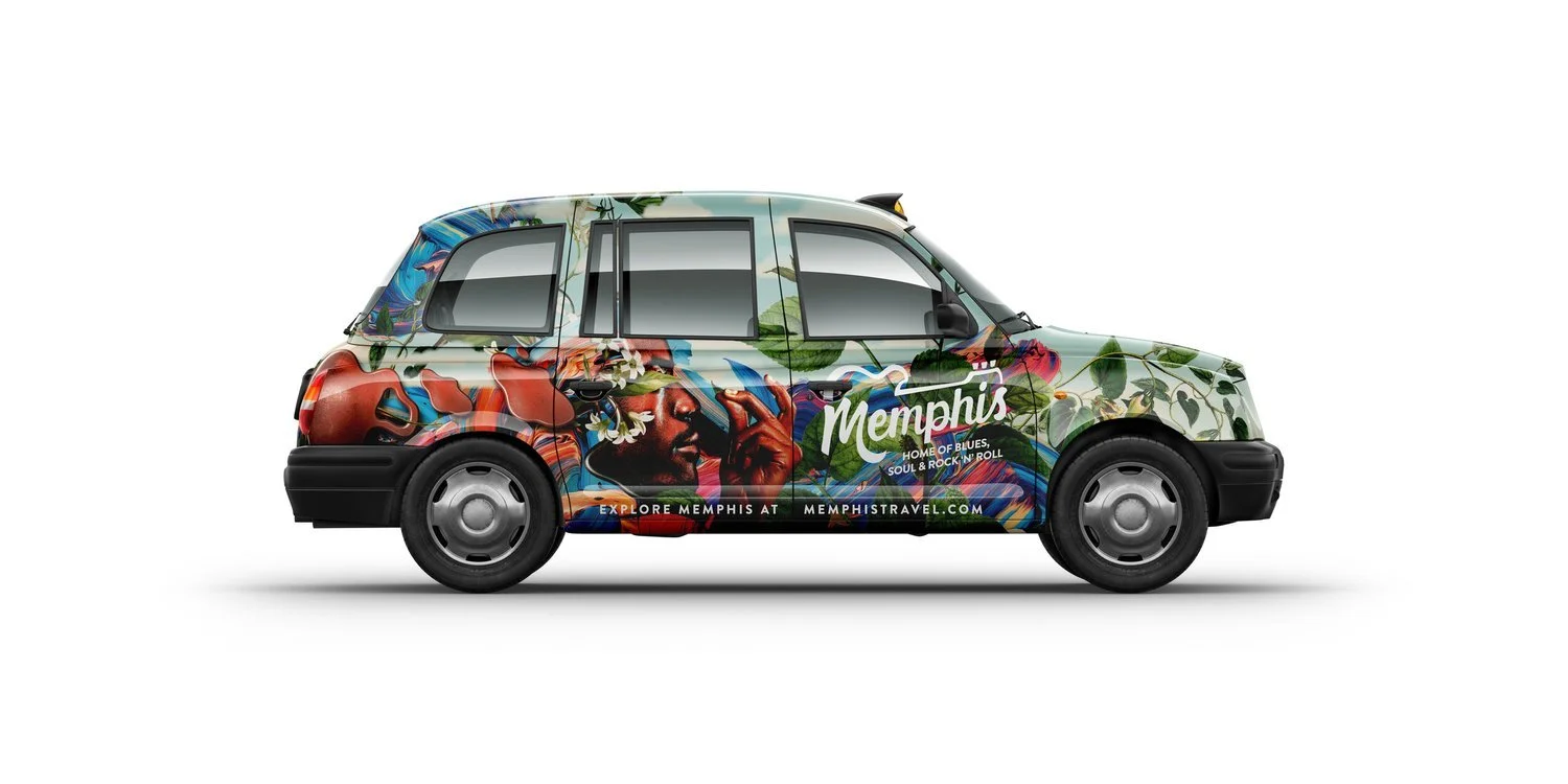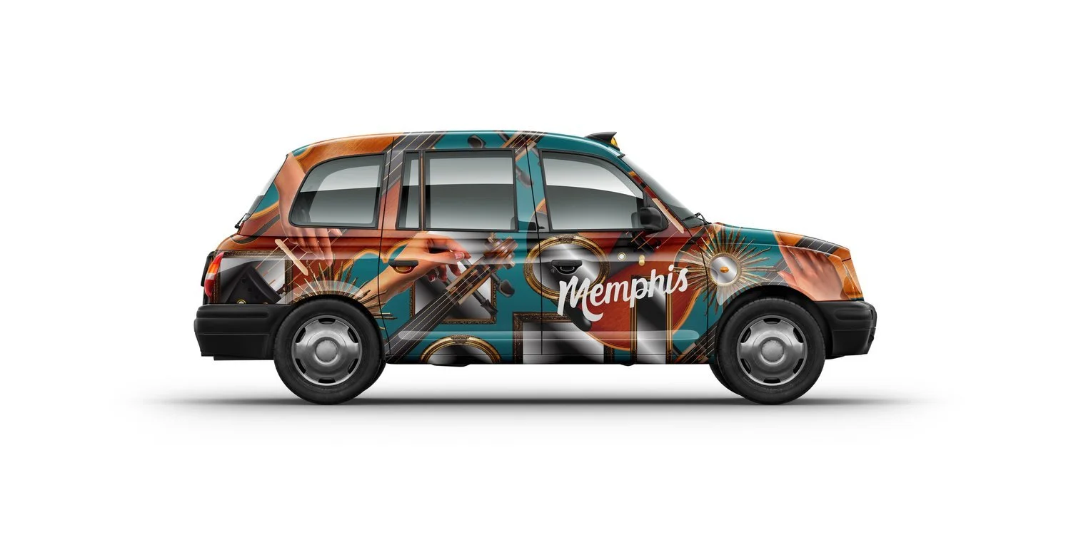 As part of a London-Memphis music tourism campaign, St Francis Elevator Ride was commissioned by the Memphis CVB to design vehicle wraps for a special fleet of London-based taxis. I refined the music narratives to present the final art direction.